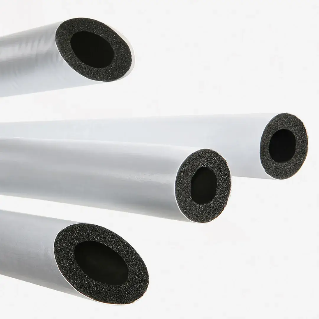 Il s’agit de tubes isolants en élastomère expansé (FEF) à cellules fermées, dotés d’un revêtement extérieur en PE blanc anti-rayures et résistant aux UV, idéal pour les installations exposées au soleil et aux conditions environnementales sévères.